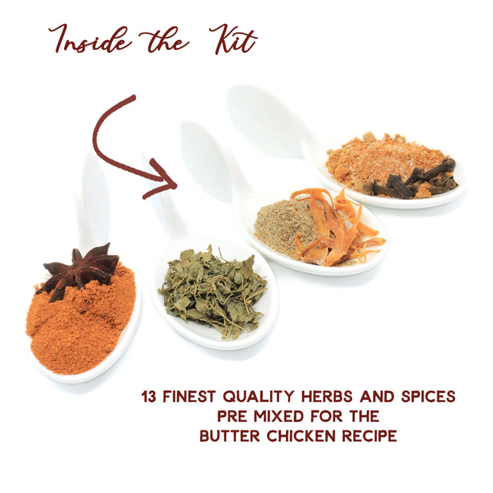 This Meal Kit will make Butter Chicken with golden Saffron Rice and a refreshing Mango Rose Lassi on the side. Includes recipe booklet.