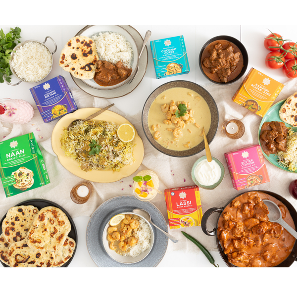 Pick any 10 kits from Butter Chicken, Hyderabadi Biryani, Kashmiri Rogan Josh, Goan Coconut Curry, Naan Bread Mix and the new Mango Rose Lassi pre-mix.